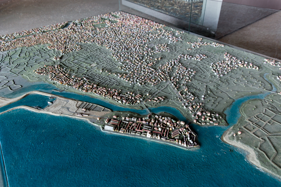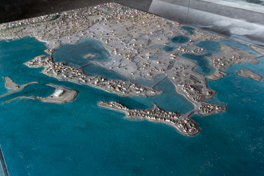 Una maqueta del Museo del Tsunami en Banda Aceh muestra los límites de la ciudad costera antes de la catástrofe.