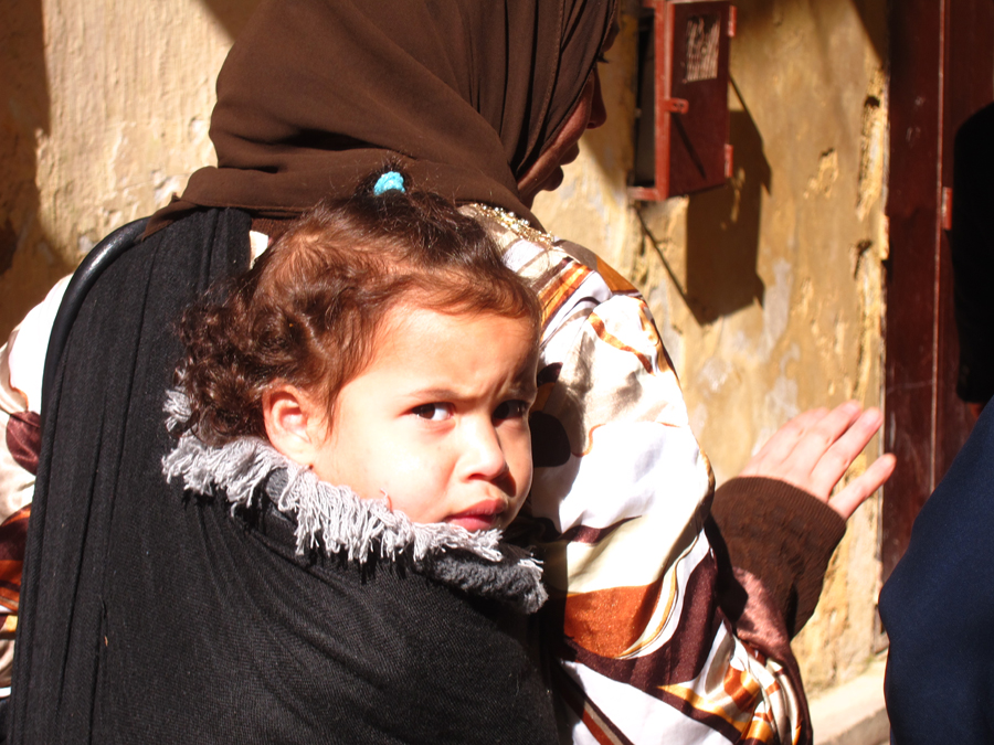 En Marruecos los cochecitos sólo existen para las clases altas. El resto de las madres carga a sus bebés colgándolos con una tela en sus espaldas.