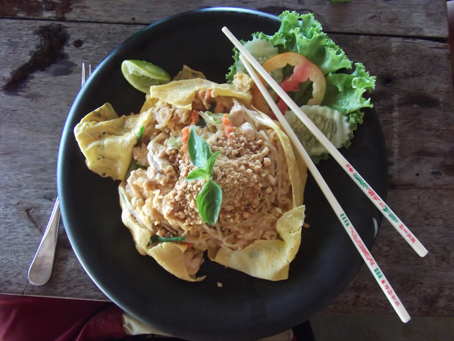 Una presentación de lujo de una de las más típicas comidas tailandesas, el Pad Thai.