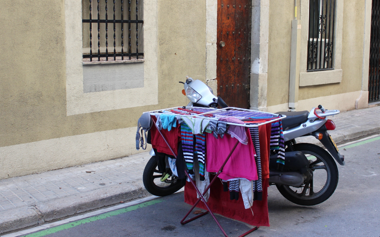 Uno de los clásicos pintorescos que me gustan de Barcelona: si vivís acá, vecinos y curiosos conocen con lujo de detalles las tramas y lunares, cuando no agujeros, de, entre otros, tus calzones y/o bombachas.