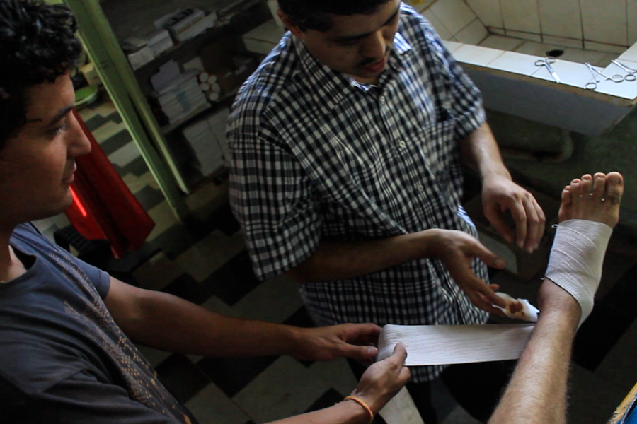 “What happened?”, pregunta luego de obviar el ponerse guantes y mientras se dispone a revisar mi tobillo. Me doy cuenta, sin embargo, de que parece mucho más interesado por mi cámara que por lo que sea que aqueje mi pie. Ésa es por lo menos la conclusión a la que llego al notar que se pasa 3 de los 4 minutos de la consulta mirando el lente en lugar del tobillo. Así y todo su ojo clínico le permite diagnosticar a simple vista una infección, tanto como recetarme antibióticos y anti inflamatorios para combatirla.