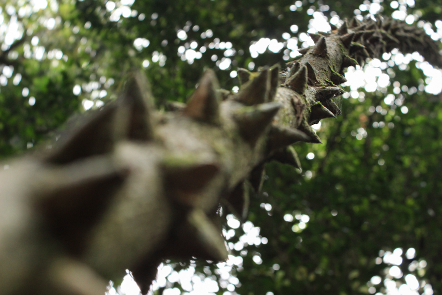 Para llegar hay que atravesar otro bosque con especies rarísimas como por ejemplo estas lianas pinchudas que caen desde el cielo.