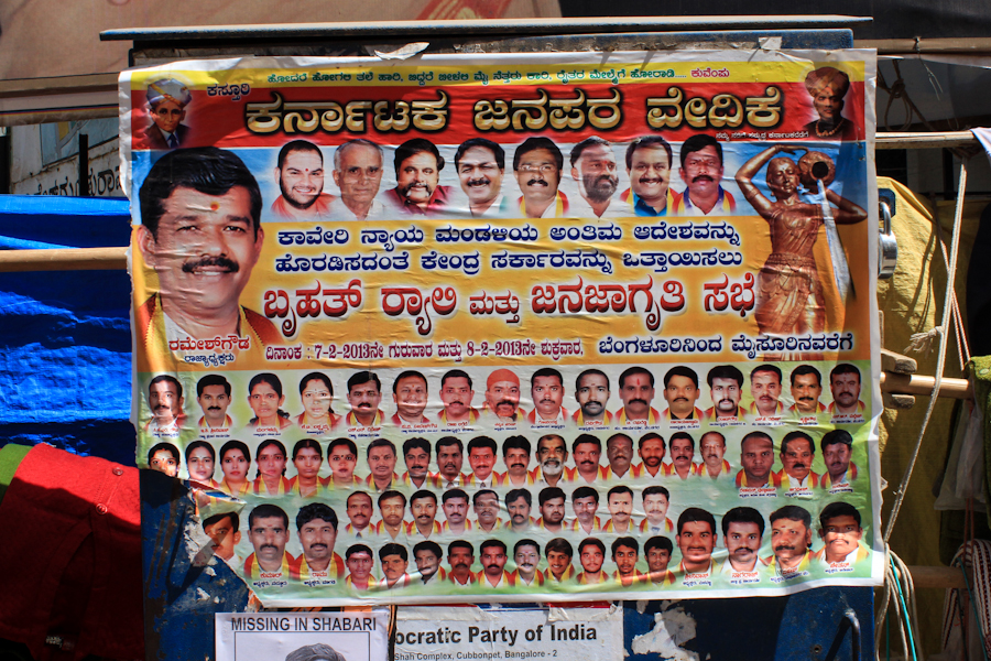 Una de las curiosidades del sur de India: la mayoría de los hombres usa bigote. En este caso, lo vemos en cara de los políticos bangalorenses.