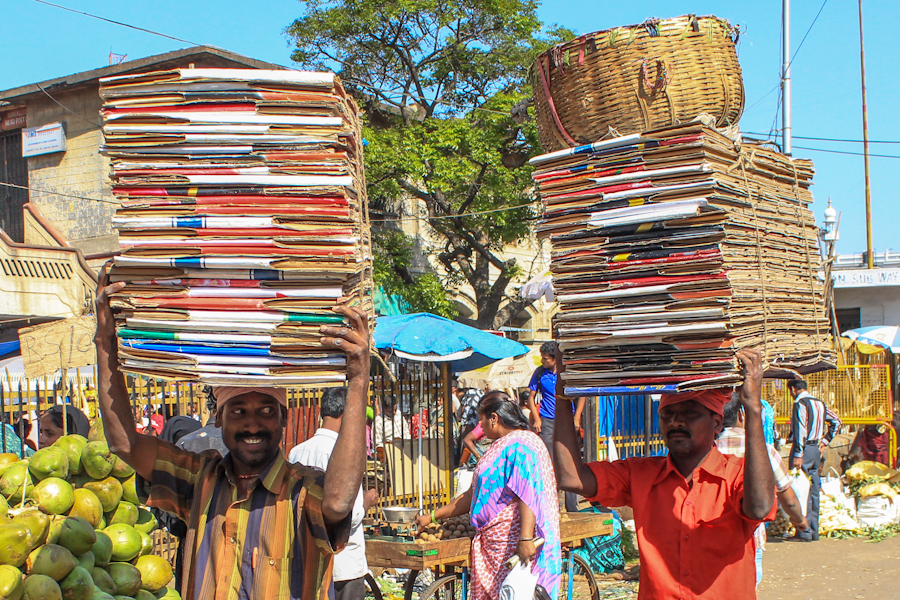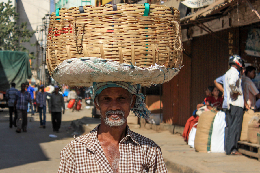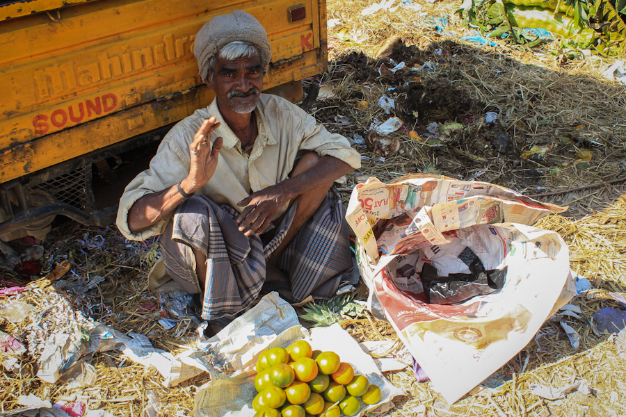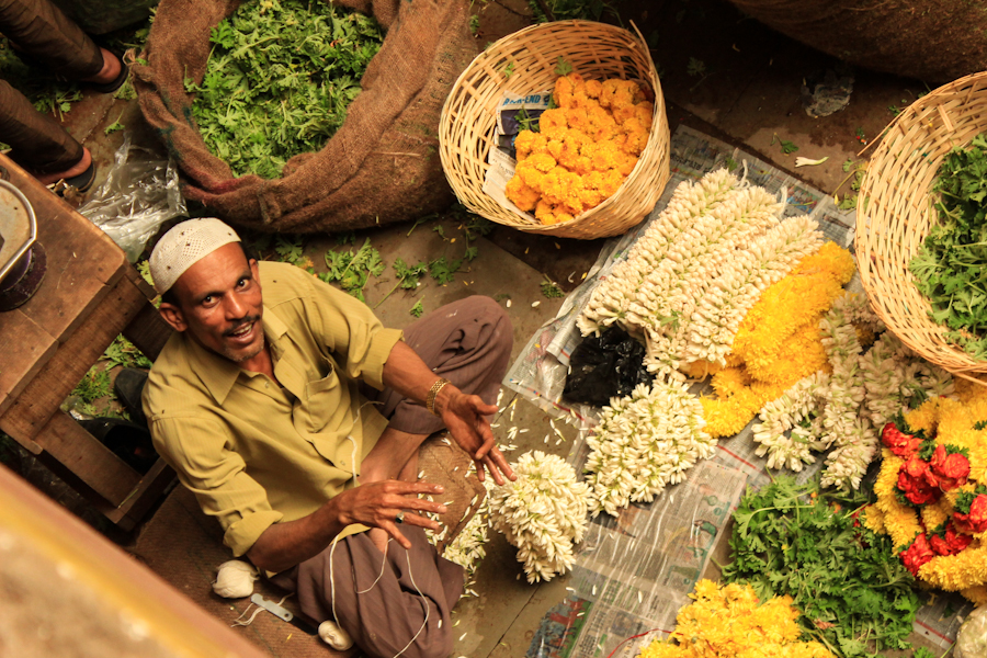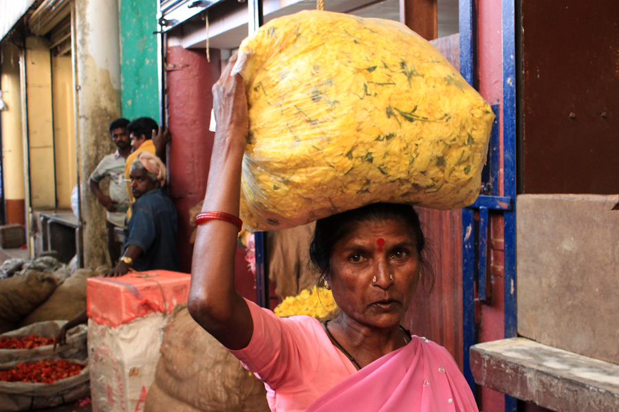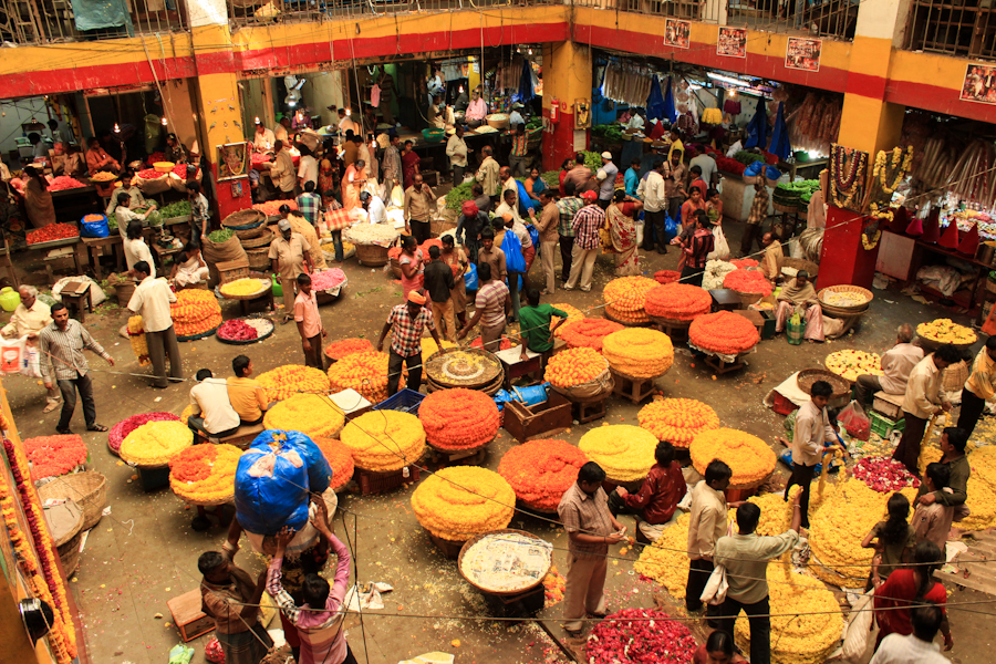 De entre todas las cosas que se pueden hacer estando de paso por Bangalore, darse una vuelta por el Krishna Rajendra Market debería figurar como prioritaria en el cuaderno viajero de todo trotamundos. Se puede ir caminando desde la Majestic Bus Station (en el barrio de Gandhi Nagar, media hora aproximadamente) y ya es toda una experiencia el sólo prestar atención a cómo va cambiando el paisaje de las calles a través de sus puesteros, la gente que las camina, el tránsito, los olores y los animales. Obviamente, a medida que se achican las distancias, van creciendo las curiosidades.