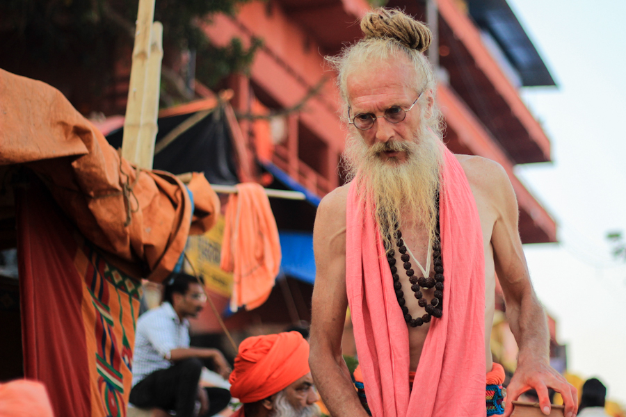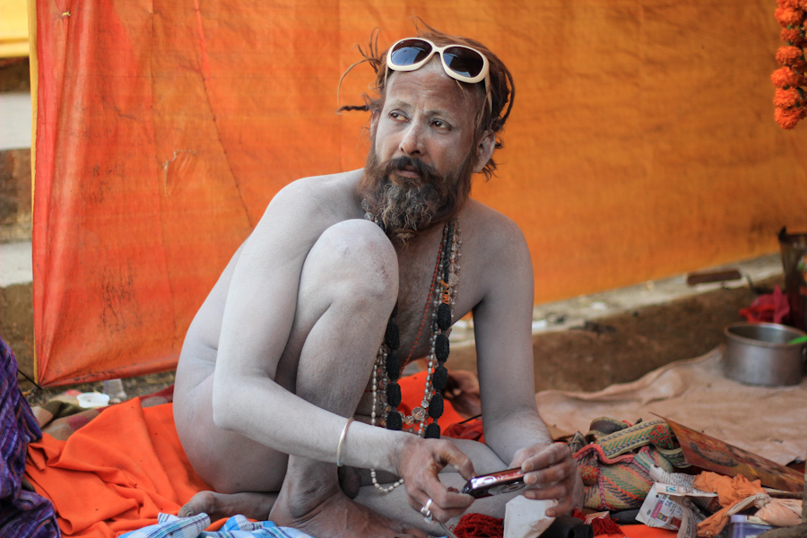 Cada uno de los Gaths que mojan sus escalones más bajos en aguas del Ganges están en estos mismos momentos atravesados por una energía indescriptible. Entre los miles de fieles que se acercaron desde todo India para doblar así la población habitual de la kaótica ciudad, un sinnúmero de Naked Babas acampan en las partes altas de las escalinatas esperando a que comience la fiesta.