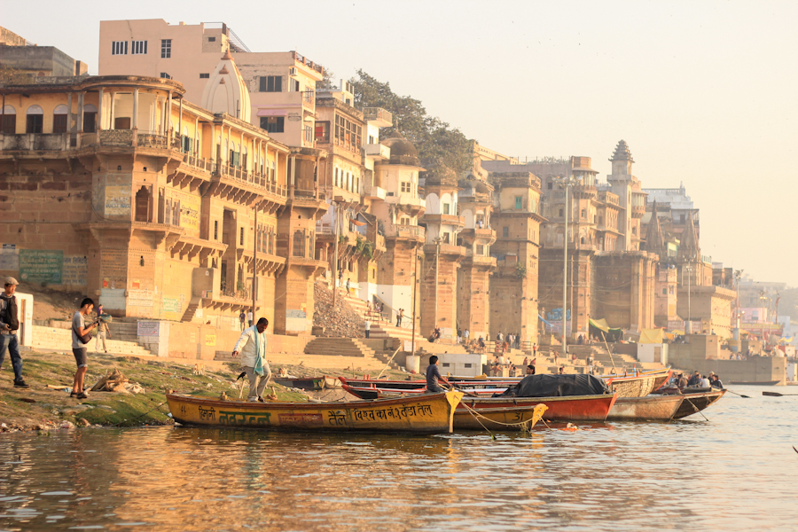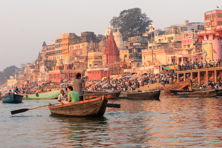 Varanasi, colorida, desde el agua.