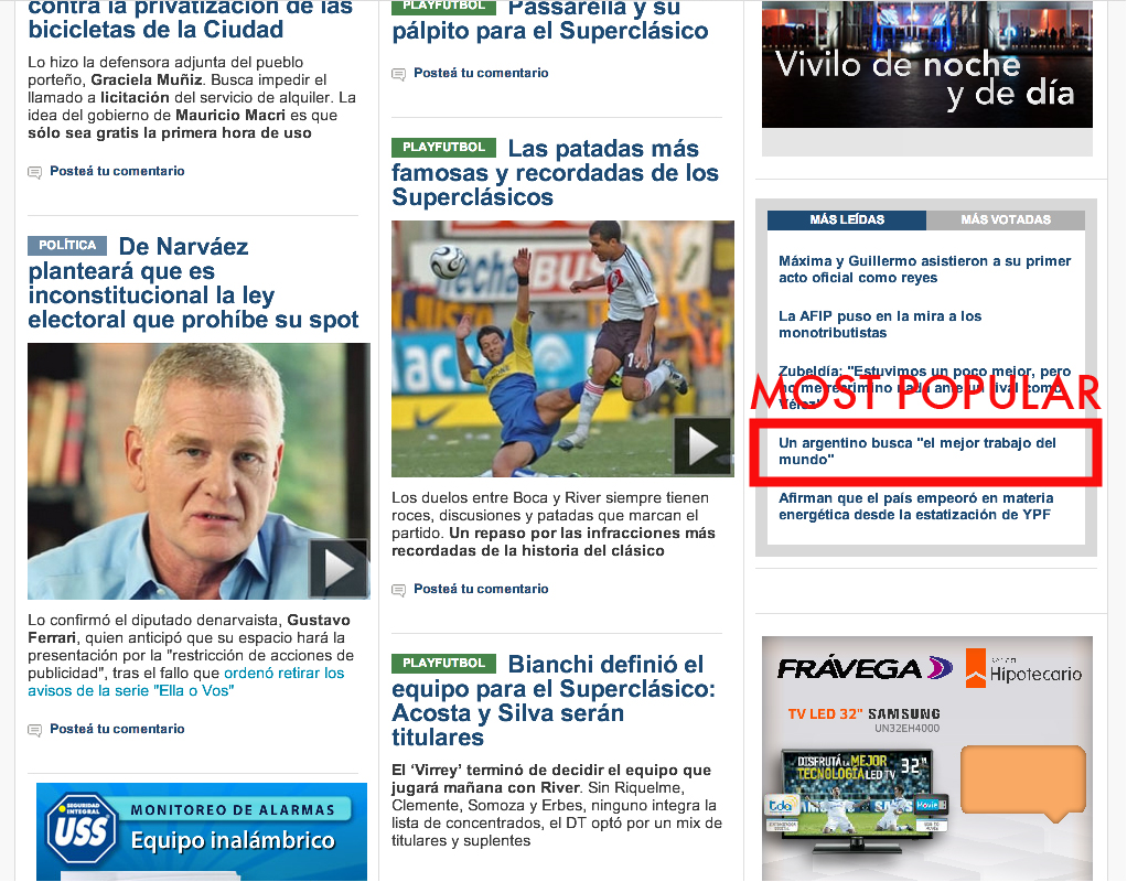 La nota en infobae.com estuvo en la home page primero y después entre las más populares.