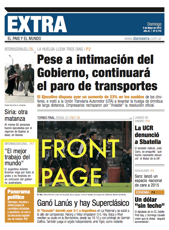 Primera plana en diarios del interior del país.