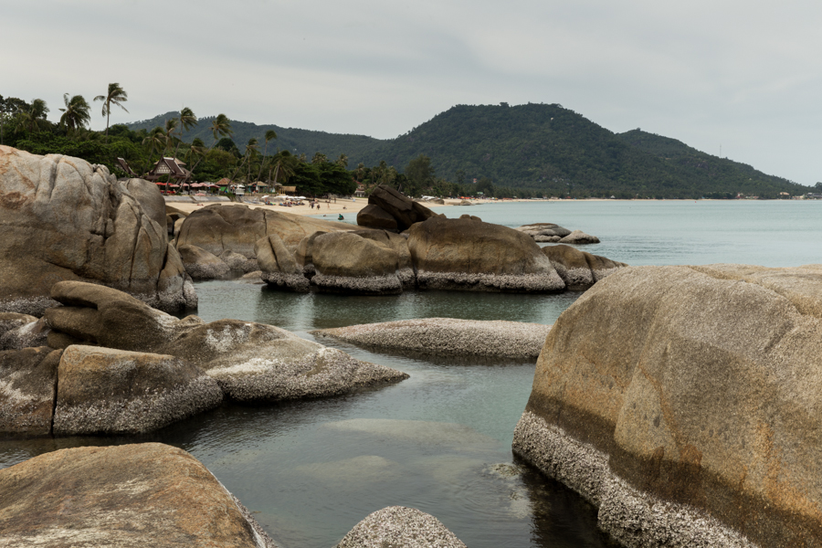 Una de las playas más lindas que vi en Samui: Tongtakian Beach un día nublado, entre Chaweng y Lamai.