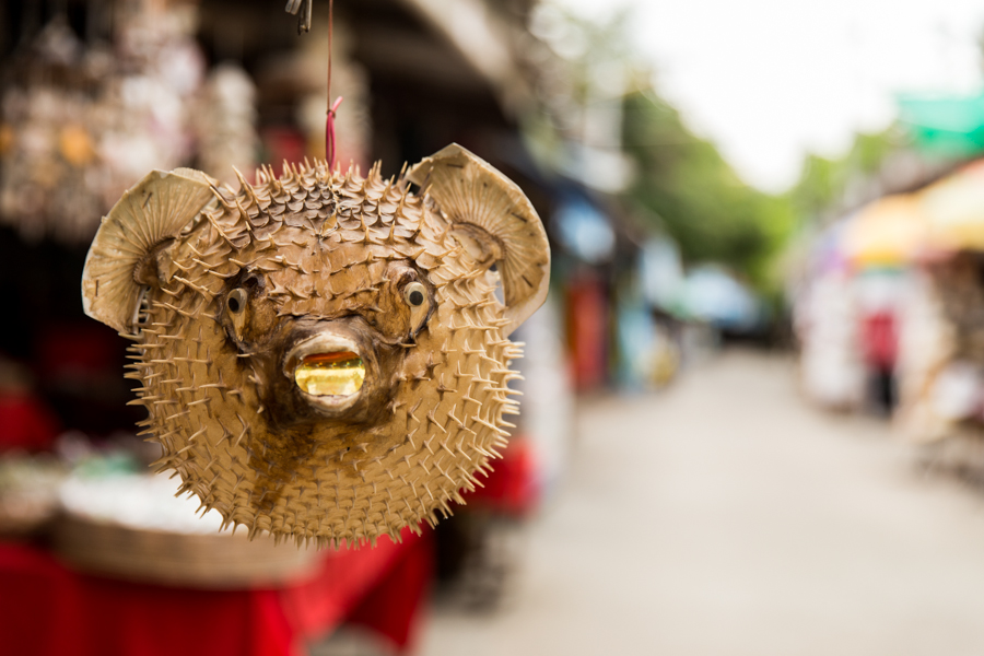 Un pez globo disecado. Poco feliz, pero real y cotidiano por estos lados del mundo.