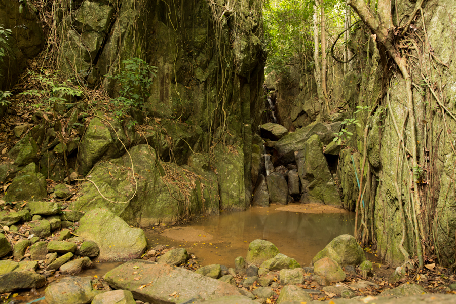 Hin Lad Waterfall en época de sequía. De septiembre a marzo es mucho más linda.