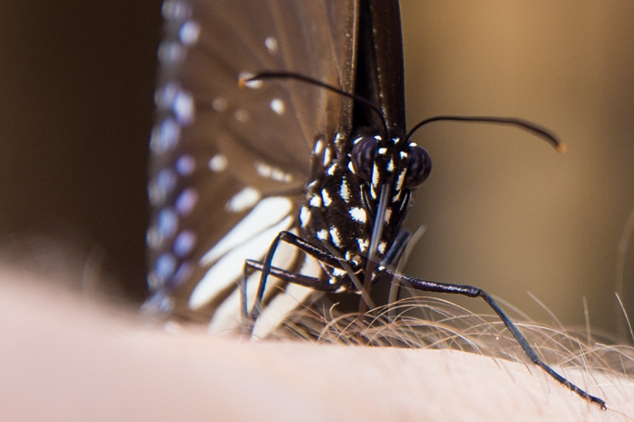 El día que llegué a Bukit Lawang esta mariposa estuvo alrededor de 10 minutos volándome de brazo en brazo.