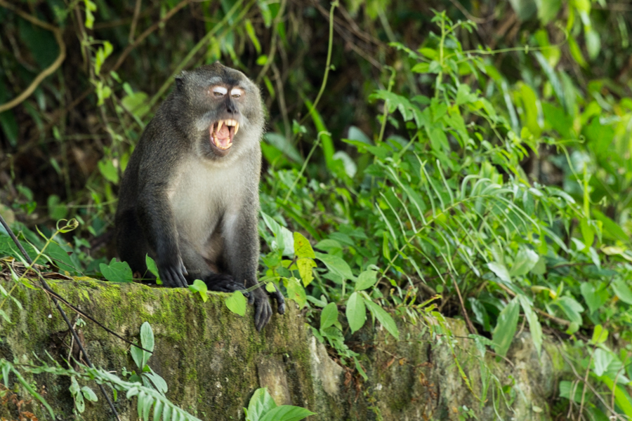 Un comando de monos atrincherados a lo largo y ancho de la ruta pone los pelos de punta a cualquier forastero amigo que en su motito alquilada se les acerca al ritmo del paseo que rige una cámara de fotos. Mientras uno piensa “ay pero que lindo monito”, ellos traman otro tipo de bienvenida: se agazapan, muestran que sí, tienen bien afilados los dientes, y con el objetivo certero en la mira, se abalanzan directamente sobre el motociclista.