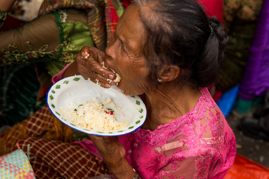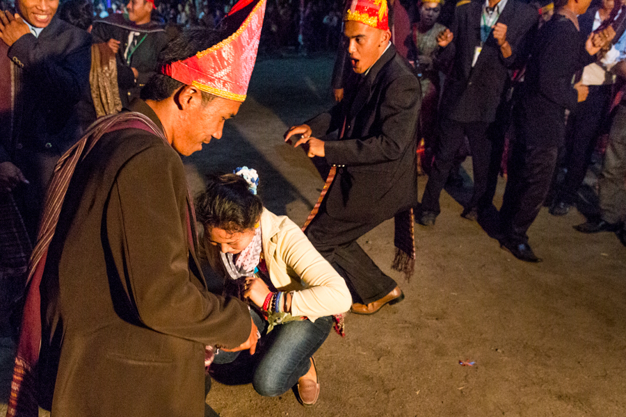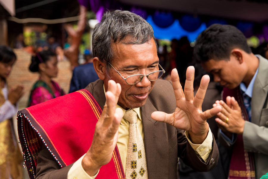 Y después siguen los bailes (se usan las manos: los hombres invitan a las mujeres juntando la las yemas de los dedos y luego estirándolos, mientras que las mujeres, también con gestos de manos, deciden si aceptan la propuesta o no). También hay discursos aconsejando a los novios sobre la vida en matrimonio y otras ceremonias que hacen que los dos que se casan sean los que menos se diviertan, ya que están desde temprano a la mañana hasta tarde en la noche, parados y sin descanso.