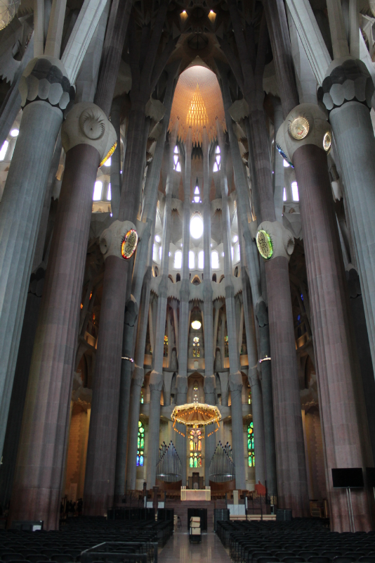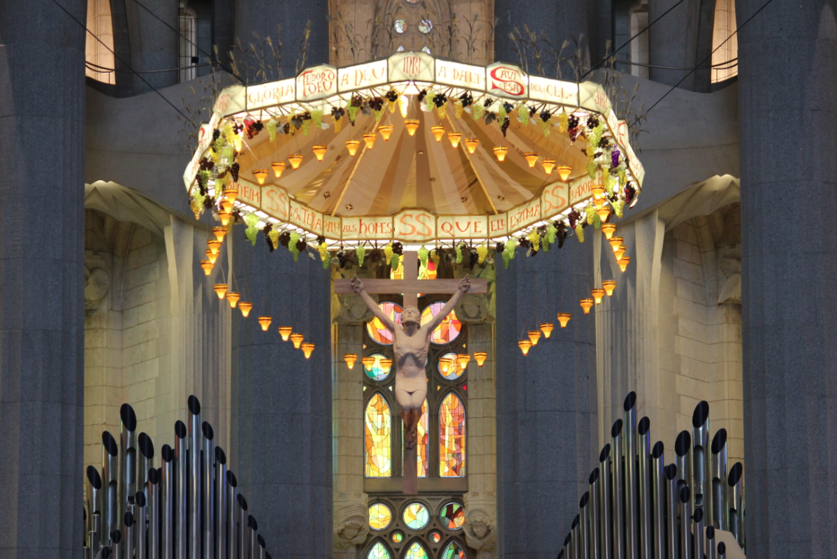 Gaudí creía que en una basílica no tenía que haber ni mucha ni poca luz, y como resultado de sus estudios se consigue una armonía espectacurlar.