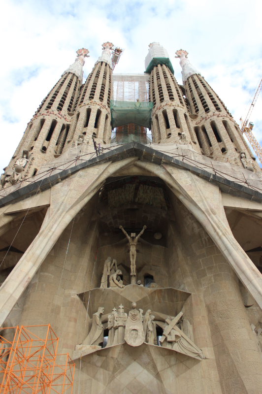 La Sagrada Familia tiene 4 fachadas. Ésta es la de la pasión, en donde se reflejan distintos momentos del día en que se crucifica a Jesús.
