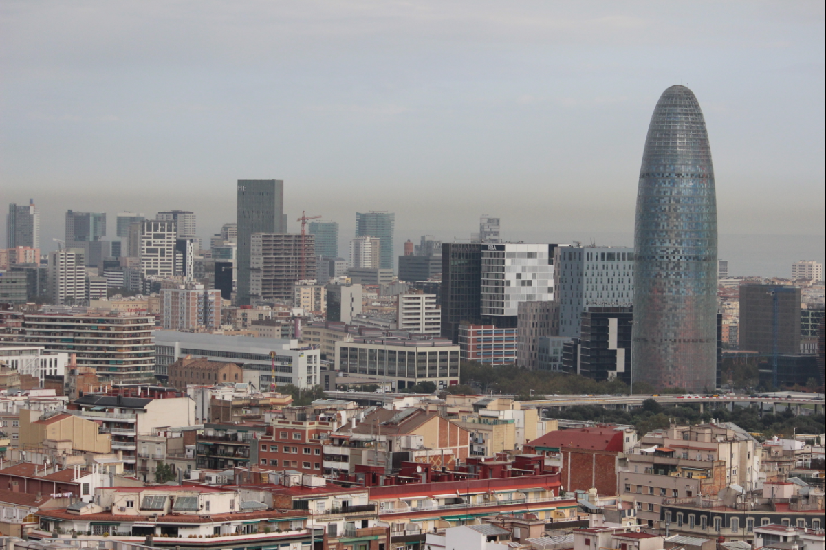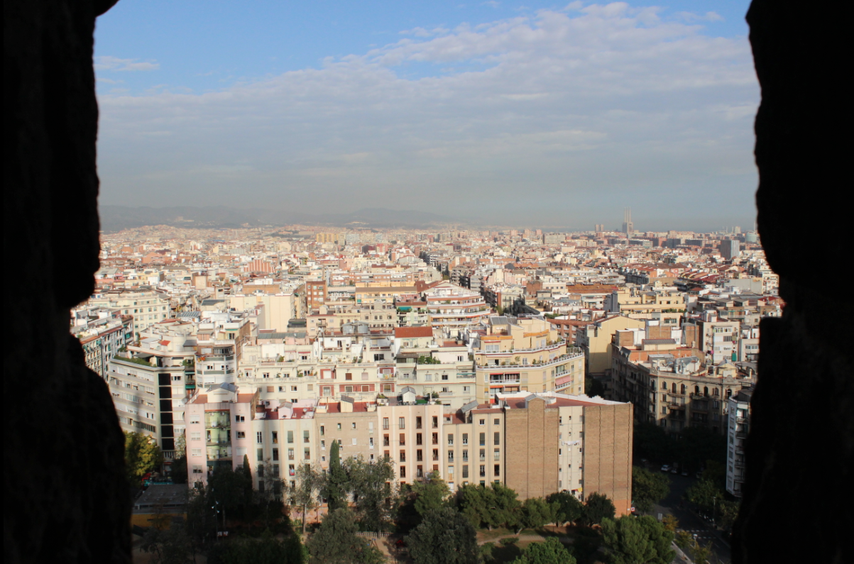 Y una vista desde otra de las torres de la misma fachada, pero hacia la parte más moderna de Barcelona.