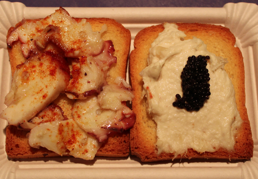 Pulpo a la gallega y bacalao con caviar son dos de las ofertas top que a razón de 1 euro la pieza podés encontrar en el Mercado de San Miguel.