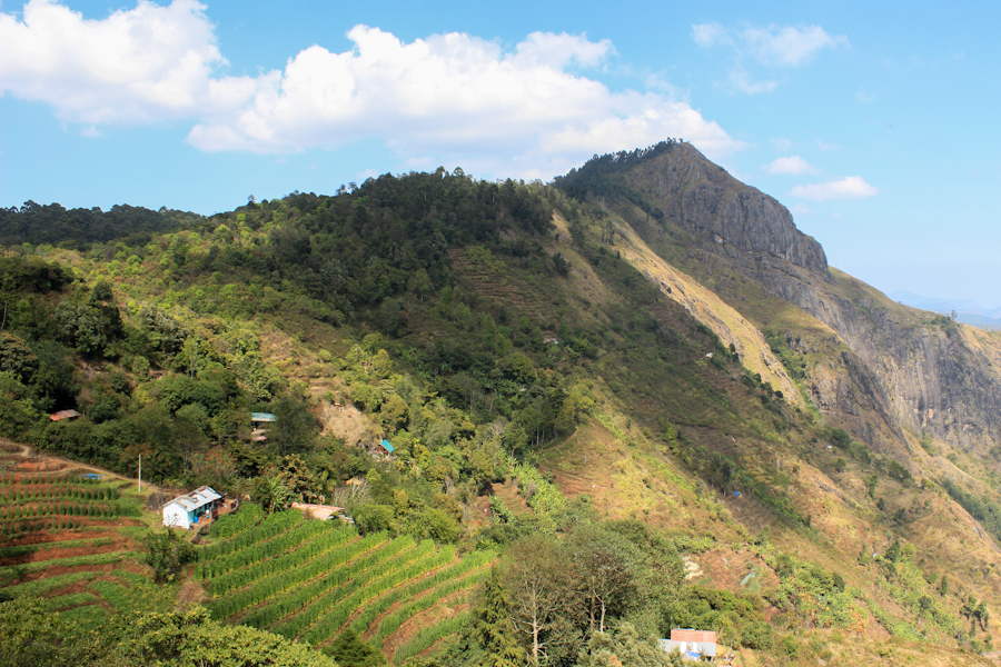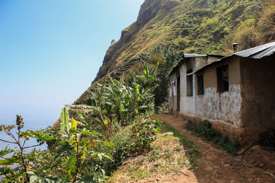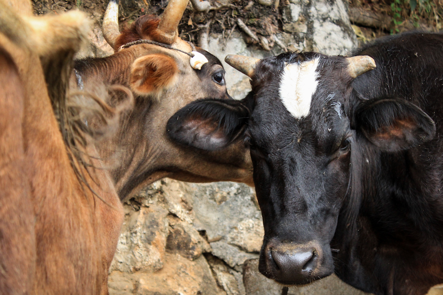 ¡Qué gran sensación cuando después de caminar varios kilómetros con las mochilas por un maldito camino de piedras empezamos a recorrer senderos de montaña que zigzagueando entre bananos iban dejando entrever que ya estábamos cerca! El primer indicio fue un establo oloriento con algunas vacas, más abajo un par de casas típicas de montaña desde donde se aparecían lugareños invitándonos con gestos a seguir camino y, por último, paneles solares por todos lados. Estaba claro que lo que nos rodeaba hacía rato que había dejado de ser normal para estos pagos: ¡llegamos a Karuna!